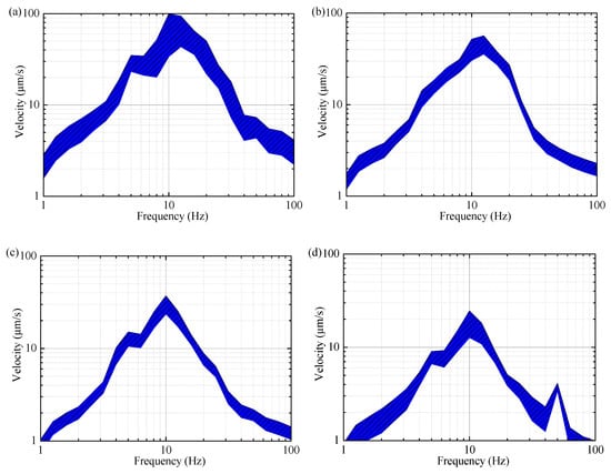 where Lv is the velocity level in decibels, is the effective value (root mean square value) of vibration velocity in m/s, and is reference velocity, of which the value is m/s, according to the regulations of the Department of Railway Transportation in the U.S. [].