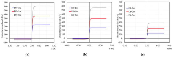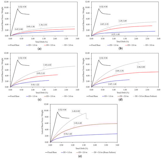5.3. Development of the Brace Yielding Mechanism as a Function of the Embedment Depth of the Footing
