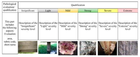 The fieldwork was also conducted using the app developed for this module (stage 3). Figure 12 summarizes these results (stages 4, 5, and 6). The main pathologies of each component were identified based on the damage catalog (Figure 3).