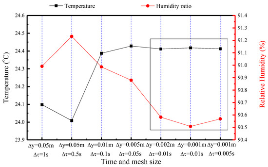 From the established model, it is evident that there are numerous PCPs with small volumes, involving intricate surface heat and moisture transfer, natural convection, and internal phase change processes. On the other hand, the refuge chamber has a larger volume, but its internal and surface heat transfer processes are relatively straightforward. Modeling this multi-scale scenario through a holistic approach would require significant computational resources. Therefore, this study adopts an independent grid approach for each sub-model by using the indoor air temperature and humidity parameters as intermediaries to facilitate heat and moisture transfer between the PCP sub-model and the MRC sub-model.