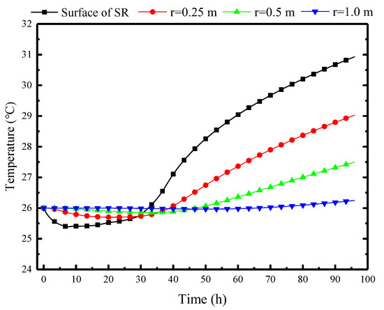 In Equation (34), α is thermal diffusivity of the surrounding rock; is the thermal conductivity of the surrounding rock; ro is the radius of far boundary and calculated by [24].