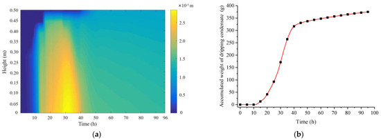 If the air temperature drops to the dew point, saturated condensation will occur. At that time, the relative humidity of air remains . Additionally, if the humidity ratio of airflow is smaller than the and there is a water film on the PCP outer wall, the evaporation of the liquid film will occur. Equation (16) can still be used as the source term.