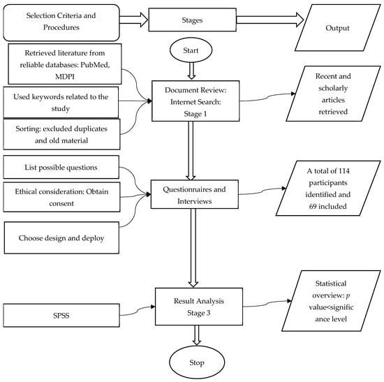 A mixed-method research design using a combination of qualitative and quantitative methods was employed in this study. The qualitative approach involved a document review aimed at establishing themes and foundations for the survey. Combining both methods helped form a comprehensive understanding of the topic. Using multiple methods fostered the cross-validation of findings, increasing the credibility and reliability of the study. Ultimately, this approach yielded a holistic understanding that was essential in addressing the complexity of research inquiries more effectively. Figure 1 illustrates the methodology flowchart.