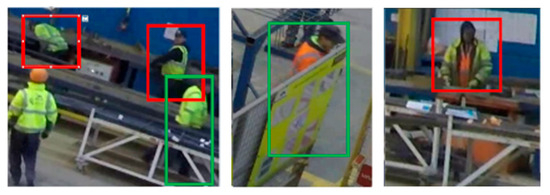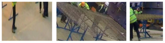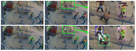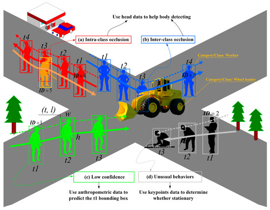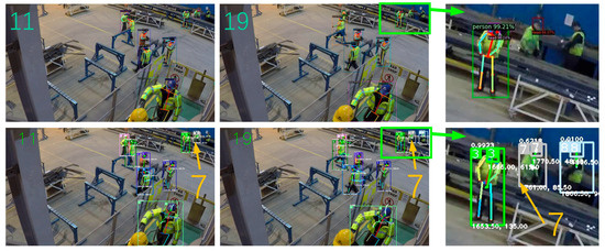 - Behavior variations. Pedestrians mainly engage in walking activities, while workers’ behaviors are more complex, and they may bend, kneel, or squat [11]. This results in poor performance (low confidence scores or target missing) of the universal detection DNN model in non-standing postures.