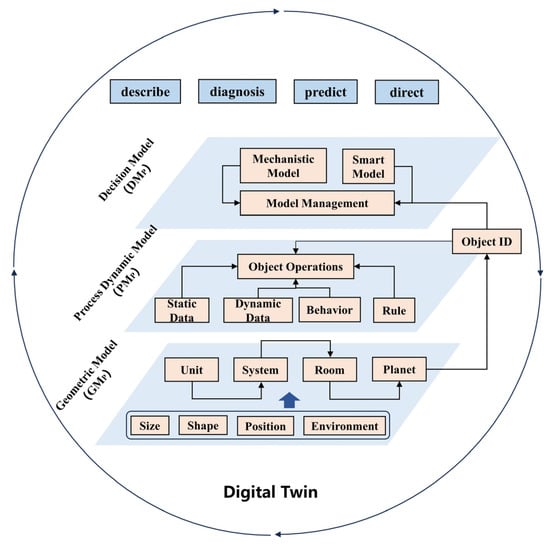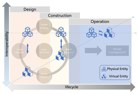 - Jiang, Y.H.; Li, M.; Wu, W.; Wu, X.Q.; Zhang, X.N.; Huang, X.Y.; Zhong, R.Y.; Huang, G.Q. Multi-domain ubiquitous digital twin model for information management of complex infrastructure systems. Adv. Eng. Inform. 2023, 56, 101951. [Google Scholar] [CrossRef]