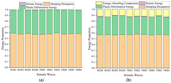 - Using finite element simulation, the characteristics of column and beam damage distribution were identified. The damage of columns is concentrated in the middle and lower parts of the structure, and the damage to the middle columns is more serious than that of the side columns. With the addition of BRB members, seismic energy can be dissipated effectively. This can reduce the plastic deformation of components, especially columns connected to the support, and provide effective technical solutions for the seismic reinforcement of columns.