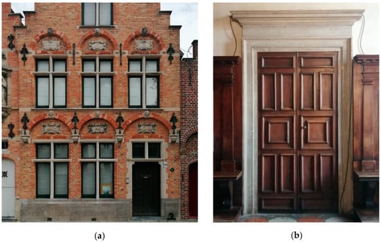 The development of science and trade, new philosophical trends, and geographical discoveries caused significant social changes in the 16th century. In architecture, the concepts and canons of Greeks and Romans were returned. The details and decorative elements of the buildings had classical forms (Figure 10a). It was recommended to create uniform coherence in interiors (area, height, and proportions of rooms) and arrange rooms on compositional axes according to the orderly division of elevations. The spatial divisions of the façades and interiors of the buildings resulted from the use of classical architectural elements (cornices, pilasters, columns, arcades, domes, rustications, arrangement and rhythm of windows).
