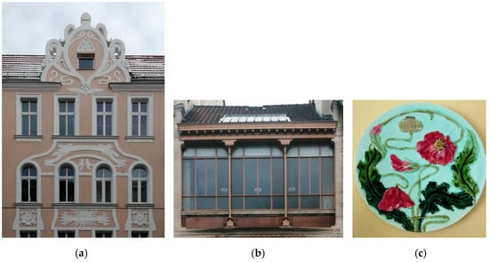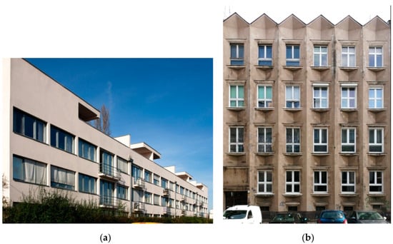 Publications from the turn of the 19th and 20th centuries were used mainly in vocational education and construction practice. They showed the latest technical achievements and preferred visual canons. Beauty and aesthetic values in architecture were also presented in magazines on broadly understood art, such as literature, painting, and sculpture []. However, functional and utilitarian issues in design were obscured by formal features expressed in rich ornamentation and decorative details. These conventions were abandoned after World War I.