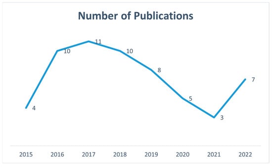 This review paper focuses on determining the predictive ability of outdoor thermal comfort indices presently available from both traditional and Industry 4.0 perspectives. This assessment tabulates the predictive capability of outdoor thermal comfort indices from studies conducted worldwide covering different climatic scenarios. The majority of studies estimated TSV from field surveys to evaluate the effectiveness of indices. Since the advanced universally applicable bio-climatic OTCI, UTCI, was well-researched from 2010 and the first publication on machine learning, a structural equation model that considers multi-sensory and subjective assessment of participants’ response, occurred around 2015, the time frame for this review analysis was from 2015–2023. Figure 1 demonstrates the number of publications within the selected time frame. The years 2016–2019 had the maximum number of publications.