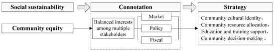 Under the new developmental paradigm, social equity not only involves the equitable distribution of resources, such as public services and cultural resources within and around communities, but also encompasses the participation rights of community residents in decision-making and management [93,94]. Social equity implies that there should not be significant disparities between different communities, and each community should have equal development opportunities, including fairness in land acquisition, protection of residents’ rights and interests, and equitable distribution of community services [95,96]. The path to achieving social equity includes the fair allocation of resources required by communities to provide high-quality public services and improve infrastructure, support for community culture, and education, providing residents with opportunities to participate in community affairs, decision-making, and management through initiatives such as community councils and resident representative elections [97,98]. Simultaneously, encouraging and supporting various cultural and social activities fosters interactions among residents and strengthens community belongingness, thus inspiring residents to actively engage in community affairs and contribute to community development (Figure 12).
