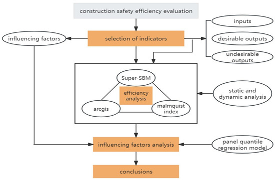 Figure 1 displays the research framework. The rest of the paper is organized as follows: Section 2 presents a literature review. Section 3 outlines the methodology. Section 4 details the selection of indicators and data sources. Section 5 presents the results of safety efficiency evaluation and identification of influencing factors. Discussions are provided in Section 6. Finally, Section 7 concludes with a summary, research insights, limitations, and future prospects.