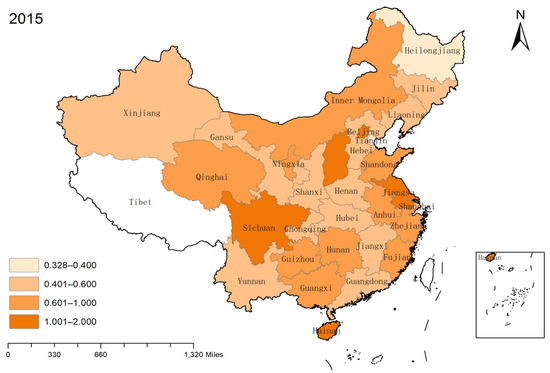 Spatial distribution of safety efficiency level in 2015.