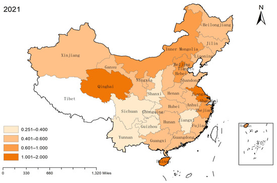 Spatial distribution of safety efficiency level in 2021.