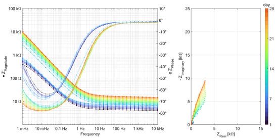 Representation of EIS measurements carried out daily over 28 days on a specimen of the series Geo FA.