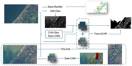 - Wang, Y.; Cui, L.; Zhang, C.; Chen, W.; Xu, Y.; Zhang, Q. A Two-Stage Seismic Damage Assessment Method for Small, Dense, and Imbalanced Buildings in Remote Sensing Images. Remote Sens. 2022, 14, 1012. [Google Scholar] [CrossRef]