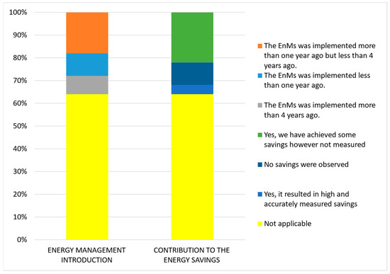 A total of 70% of the respondents were not able to answer the question about complications of EM maintenance because of insufficient experience with ISO 50001. In total, 14% of the respondents agreed that it is difficult to comply fully with the requirements of the standard. Also, 12% claimed that energy management according to ISO 50001 fulfilled the original expectations. Unfortunately, the answer does not specify what exactly these expectations were. Only 4% of the respondents hold the opinion that thanks to using the ISO 50001 standard, it is easier and more beneficial to keep quality energy management. In their view, it is easier to keep energy management by following the requirements of the standard than without it.