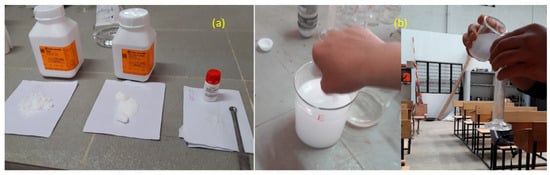 (a) Urea, calcium chloride, and urease enzyme. (b) Urease solution preparation.