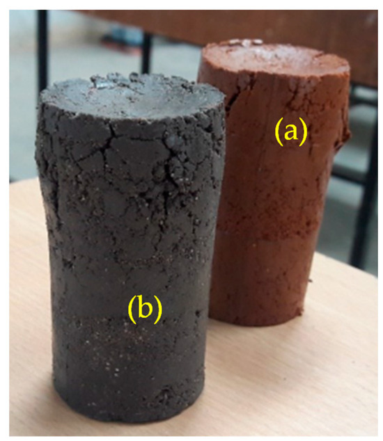 Failure patterns observed in the UCS tested: (a) red soil and (b) black cotton soil.