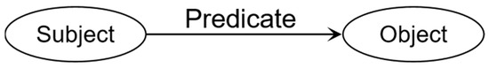 Resource Description Framework (RDF), developed by the W3C, is a framework for representing information on the web [105], which is essentially a data model. RDF (S) commonly refers to a combination of RDF and Resource Description Framework Schema (RDF Schema, RDFS) [106]. The RDF data model consists of an RDF graph and an RDF dataset. The RDF graph contains a series of logical statements about concepts and their relationships. These statements are often referred to as ‘RDF triples’ (see Figure 6), which are directional and consist of a subject, predicate, and object. In addition, each concept and relationship has a Unique Resource Identifier (URI) so that RDF graphs can be explicitly labeled. The RDF dataset is used for a collection of RDF graphs.