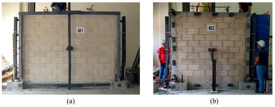 Front view of the walls before testing: (a) Wall M1; and (b) Wall M2.