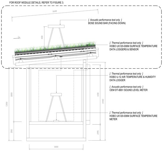 Typical small-scale test set-up for the thermal and acoustic performance tests. Figure 3 illustrates details of iGR, iMDR, uiGR, and uiMDR roof modules.