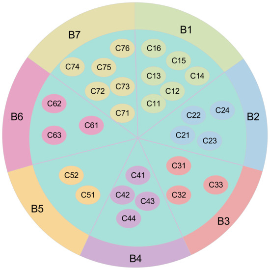 The stages of design, production, and transportation, as well as construction and assembly, comprise the majority of the time dimension of informatization of assembly-building projects. The subject dimensions focus on schedule, cost, quality, personnel, materials, equipment, collaborative management platform construction, and environmental management of the construction site environment. Directly or indirectly, the quality and advancement of assembly-building projects are impacted by the informatization of design, production transportation, and construction assembly. Therefore, the two subject dimension elements of schedule and quality are incorporated into three key process areas. Key process domains such as personnel, materials, machinery and equipment, costs, and environmental protection can be considered relatively independent from one another. They encompass various functions and areas of expertise, necessitate autonomous independent decision-making and control capabilities, utilize non-interfering data, and demand specialized equipment and technical assistance, as well as targeted training and development. Thus, independent management contributes to more flexible, efficient, and professional project management. Collaborative management is an integrated process to improve the management efficiency of all project participants and can also be evaluated independently as a key process area to assess its information technology maturity. In the end, seven key process areas were identified, as detailed in Table 1.