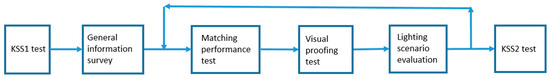 The primary objective of this study was to investigate how different lighting conditions influenced individuals’ experiences. Three trials were conducted within the office space, with each experiment consisting of three distinct sessions. In Session 1, participants performed cognitive tasks to assess their performance under different lighting conditions. Session 2 focused on evaluating participants’ visual perception using Questionnaire 1 (Q1, Appendix B, Figure A2), a cognitive performance test, and Questionnaire 2 (Q2, Appendix B, Figure A3), a proofreading task, under lighting in H1, H2, and H3 conditions. Session 3 aimed to gather valuable participant feedback regarding their experiences with the specific lighting systems used in the experiments.