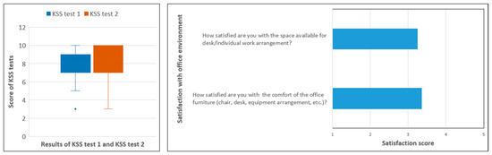 (Left): KSS 1 and KSS 2 answers; (Right): satisfaction with office environment.