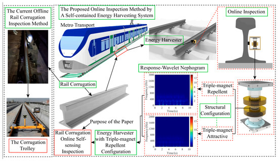 - Sun, Y.H.; Wang, P.; Lu, J.; Xu, J.M.; Wang, P.G.; Xie, S.Y.; Li, Y.W.; Dai, J.; Wang, B.W.; Gao, M.Y. Rail corrugation inspection by a self-contained triple-repellent electromagnetic energy harvesting system. Appl. Energy 2021, 286, 116512. [Google Scholar] [CrossRef]