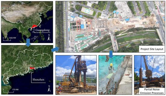 The significance of rail transit projects in urban transportation systems has become increasingly prominent due to urbanization and continuous population growth [1]. In China, for instance, 50 cities planned to implement rail transit projects by the end of 2022, with a length of about 6000 km and a USD 560 billion investment [2]. The expanding scale of rail transit construction means that increasing construction activities are taking place in high-density urban areas, making their environmental impacts, like construction noise, more obvious [3,4]. It is reported that China’s environmental noise complaints exceeded 4 million cases in 2021, and construction noise-related cases responded to 33.4% [5].