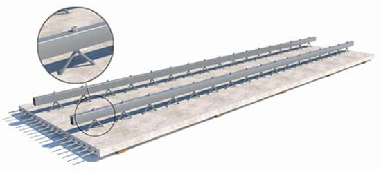 A 3D graph of a precast prestressed concrete slab with removable rectangular steel-tube lattice girders.