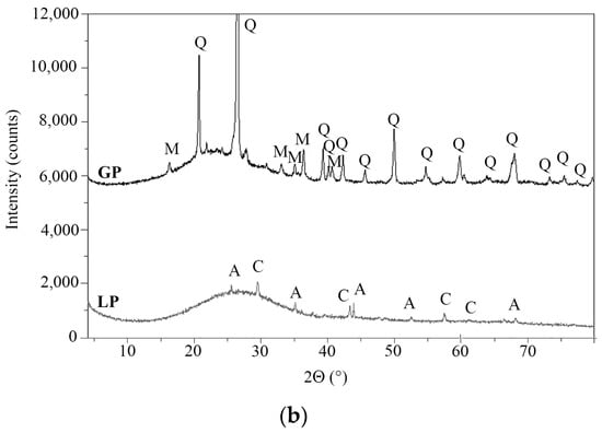 - LP, on account of the lower dimensions and higher amorphous character, provides higher mechanical properties hinting at a limited but effective reactivity. This is also reflected by the decrease in porosity derived by MIP as well as the decrease in water absorption by the capillary action of the mortar when compared to the GP-modified sample.
