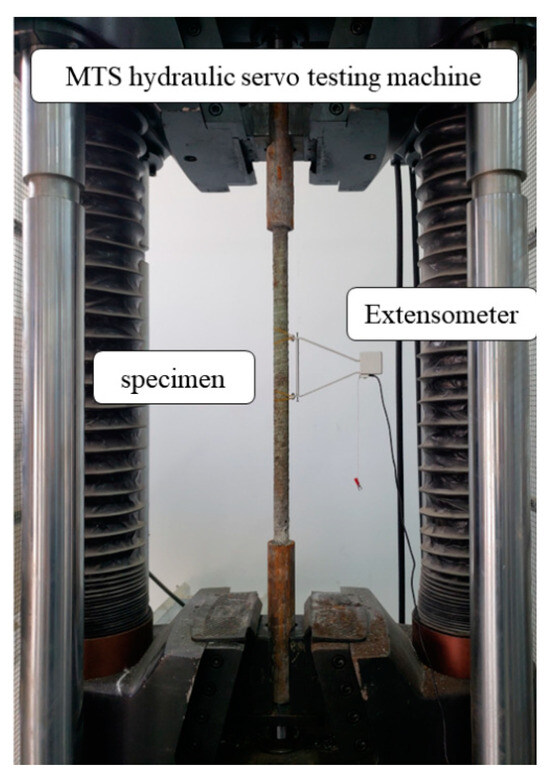 The acquisition system comprises the MTS experimental setup and a computer-based strain measurement apparatus, utilizing the TS 3890 static strain measurement processor for data collection. Axial tension in the specimen is accurately determined using an NCS-YYU-10/200 electronic extensometer. This device, built on a simply supported beam design and leveraging resistance strain principles, features a gauge length of 200 mm. It is capable of measuring deformations up to 10 mm with a minimal error margin of 0.104%, ensuring precise and reliable data for analysis.
