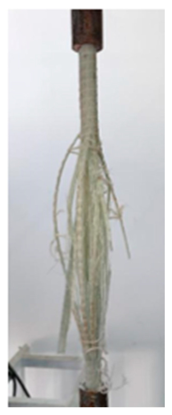 The reliability of adhesive application makes it challenging to ensure quality, leading to a high risk of slip damage, particularly in specimens with a 10 mm diameter. To enhance the bonding effectiveness, the steel pipe was longitudinally divided into sections. Subsequently, epoxy resin was applied to adhere these bisected steel pipe sections to the GFRP bars, a modification aimed at improving the overall integrity and bonding strength of the assembly.