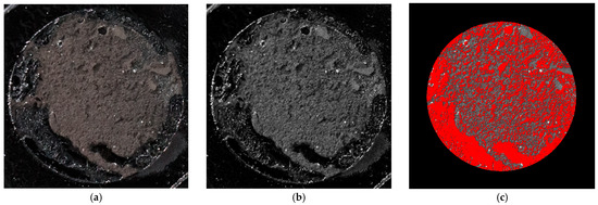 By implementing grayscale manipulation, the spalling ratio of CEACBs on the surface of the aged asphalt was quantified. This approach offers several advantages, including minimal errors and enhanced result reliability. The operational procedures are visually presented in Figure 11, encompassing a series of detailed steps: