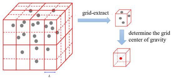 - Use the voxel grid method for lightweight point cloud processing to reduce the amount of point cloud data. Among them, when the voxel grid contains isolation points, they are removed by index to avoid the contour edge points being replaced by adjacent centroid points.