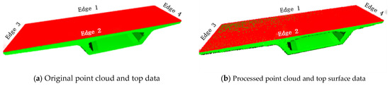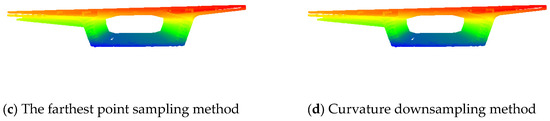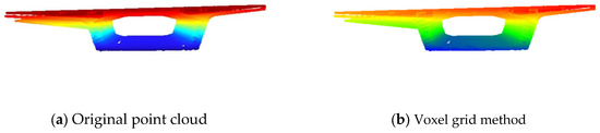 - Zou B et al. verified with the FWD method that the traditional sampling process had the problem of large deviation in the contours of the point cloud top surface obtained by processing [23]. In this paper, the edge optimization of the voxel grid method is used to reduce the deviation significantly, the overall deviation is less than 5 mm, and the edge of the point cloud is well-preserved.
