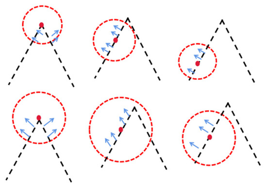 - Set an angle threshold; when the neighborhood angle value of a point is greater than the threshold value, determine the point to belong to the obvious feature region; otherwise, it is regarded as an obvious region;