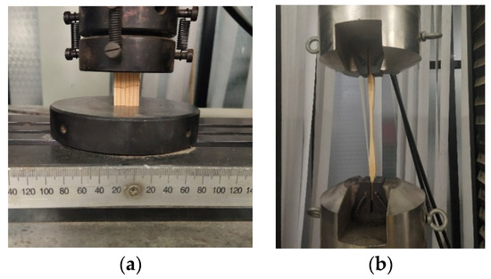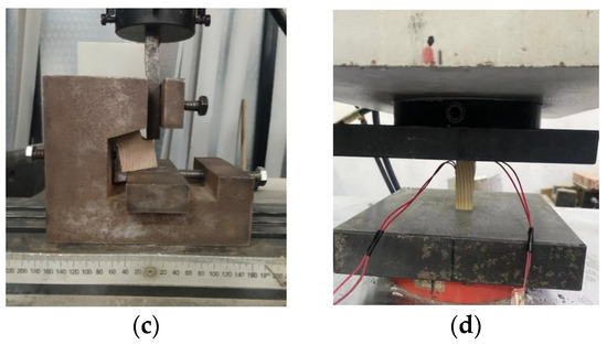 Mechanical performance test for timber. (a) The compressive strength, parallel; (b) the tensile strength, parallel; (c) the radial tensile strength, perpendicular; (d) compressive modulus of elasticity.