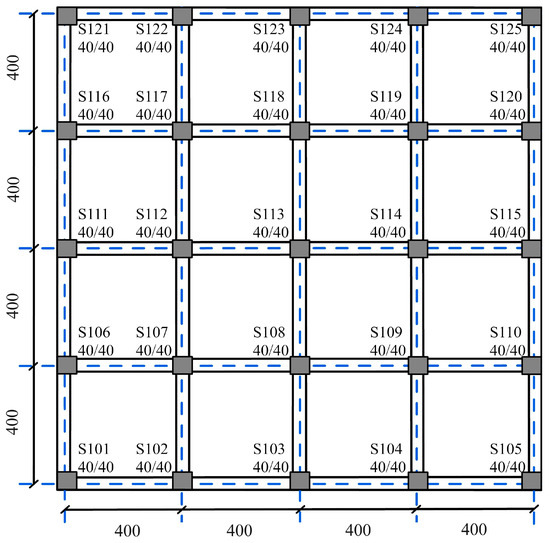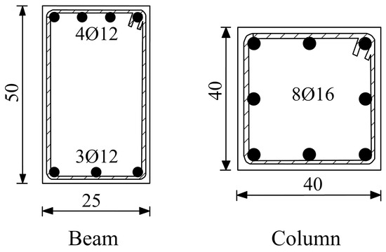 Beam and column cross-sections (unit of cross-sectional dimensions in cm).