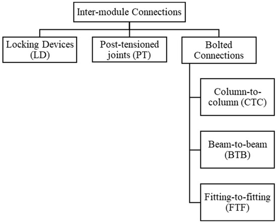 - Corfar, D.-A.; Tsavdaridis, K.D. A Comprehensive Review and Classification of Inter-Module Connections for Hot-Rolled Steel Modular Building Systems. J. Build. Eng. 2022, 50, 104006. [Google Scholar] [CrossRef]
