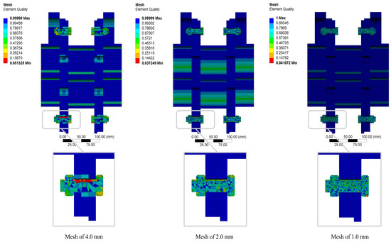 FE model (1.0, 2.0, and 4.0 mm) mesh size.