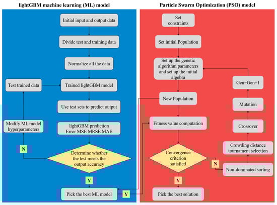 Figure 4 delineates the integrated algorithm of PSO and ML, illustrating the cohesive workflow of this integrated algorithm. This integration harnesses the strengths of both methodologies, thereby enhancing the model’s performance and generalization capability. The PSO algorithm is renowned for its robust global search capability, which significantly aids ML models in circumventing local optima, thereby increasing the likelihood of identifying the global optimal solution. Moreover, PSO’s inherent ability to autonomously search and select features plays a pivotal role in extracting more informative and relevant features. This, in turn, substantially boosts the performance of ML models.