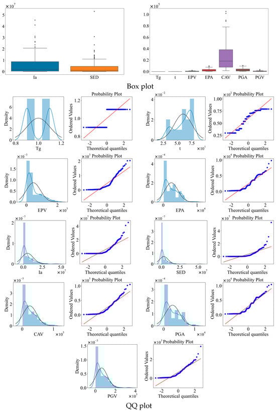 In this study, following the preprocessing protocol referenced from existing research [], the post-preprocessing phase involves a thorough examination of the data’s characteristics, including its discreteness, adherence to a normal distribution, and inter-variable correlations. This analysis is primarily conducted using three graphical methods: box plots, quantile–quantile (QQ) plots, and heat maps calculated by Pearson correlation coefficient.