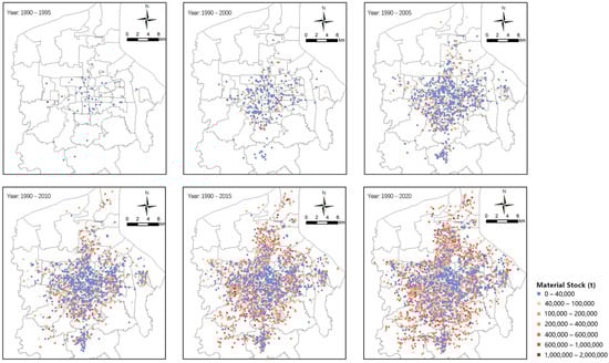 - Tanikawa, H.; Hashimoto, S. Urban Stock over Time: Spatial Material Stock Analysis Using 4d-GIS. Build. Res. Inf. 2009, 37, 483–502. [Google Scholar] [CrossRef]