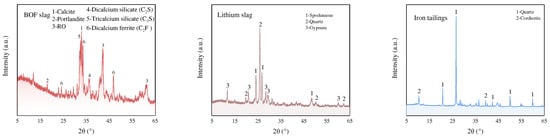- The cement mortar containing BOF slag, lithium slag, and iron tailings achieved a high compressive strength. The BOF slag, lithium slag, and iron tailings produced a synergistic effect in the cement mortar in the presence of DEIPA. The SCMs underwent a pozzolanic reaction, yielding additional hydration products.