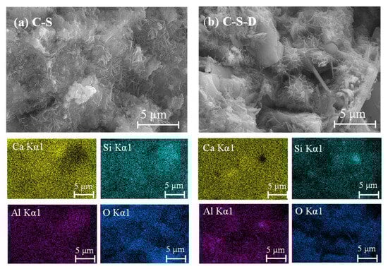 - Kapeluszna, E.; Kotwica, L.; Rózycka, A.; Golek, L. Incorporation of Al in C-A-S-H gels with various Ca/Si and Al/Si ratio: Microstructural and structural characteristics with DTA/TG, XRD, FTIR and TEM analysis. Constr. Build. Mater. 2017, 155, 643–653. [Google Scholar] [CrossRef]