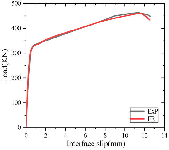 Figure 5 shows the load–slip comparison curves for the push-out test and the finite element model.
