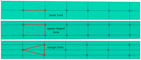Figure 18b shows the effect of the layout form of the post-installed reinforcing bars on the peak load. The variation pattern of peak load is not significant with the change in the layout form of the post-installed reinforcing bars. Compared with the UHPC-strengthened secondary loaded T-beam specimens with a linear layout form of the post-installed reinforcing bars, the peak load slightly increased (within 2%) when the layout form was square and slightly decreased (within 2%) when the layout form was changed to triangular. This means that the UHPC-strengthened secondary stressed T-beams’ ability to hold weight does not decrease when the layout form of the post-installed reinforcing bars changes.