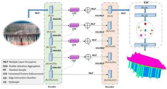 - Xue, Y.; Zhang, R.; Wang, J.; Zhao, J.; Pang, L. EEI-NET: EDGE-ENHANCED INTERPOLATION NETWORK FOR SEMANTIC SEGMENTATION OF HISTORICAL BUILDING POINT CLOUDS. ISPRS Ann. Photogramm. Remote Sens. Spat. Inf. Sci. 2023, 10, 239–245. [Google Scholar] [CrossRef]